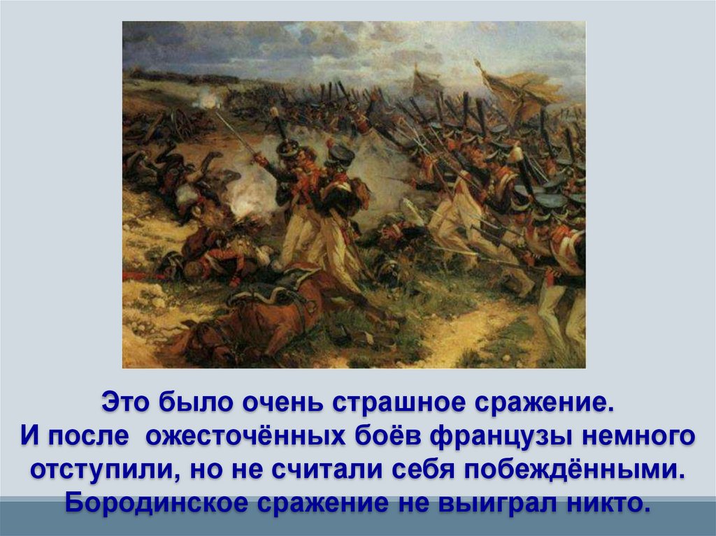 Это было очень страшное сражение.И после ожесточённых боёв французы немного