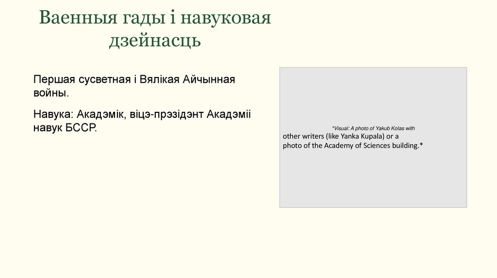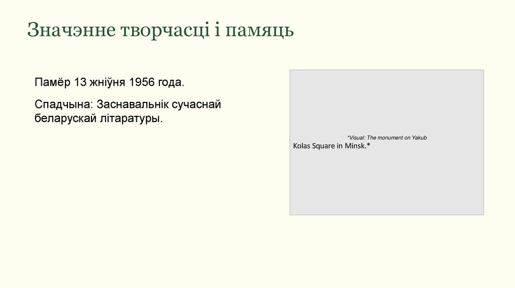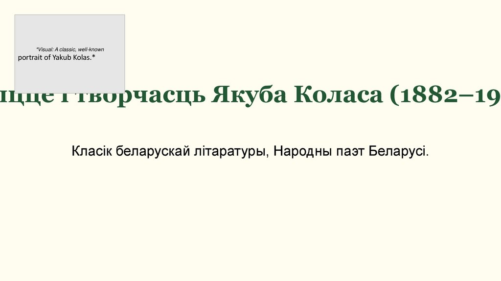 *Visual: A classic, well-knownportrait of Yakub Kolas.*