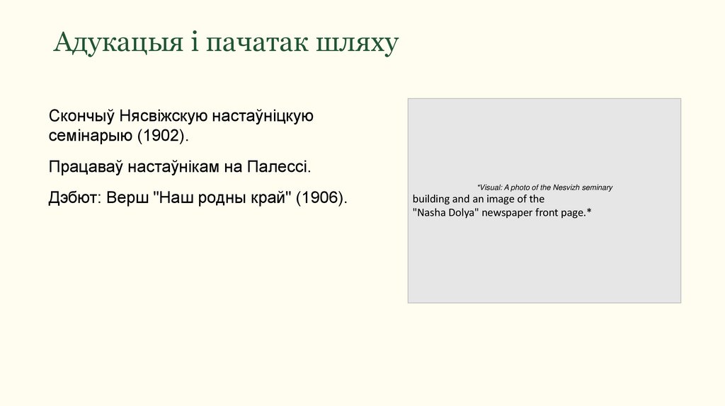 Адукацыя і пачатак шляхуСкончыў Нясвіжскую настаўніцкую