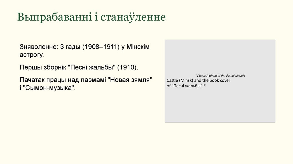 Выпрабаванні і станаўленнеЗняволенне: 3 гады (1908–1911) у Мінскім