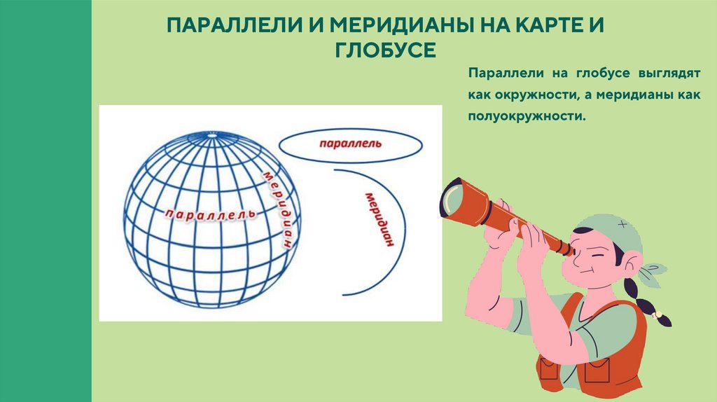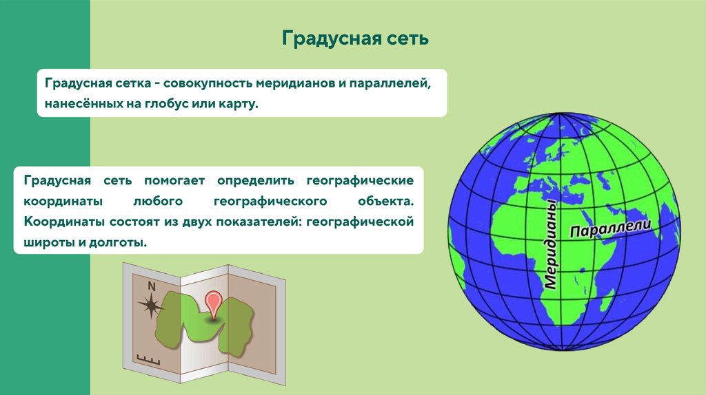 Параллели и меридианы образуют градусную сеть. С ее помощью можно находить
