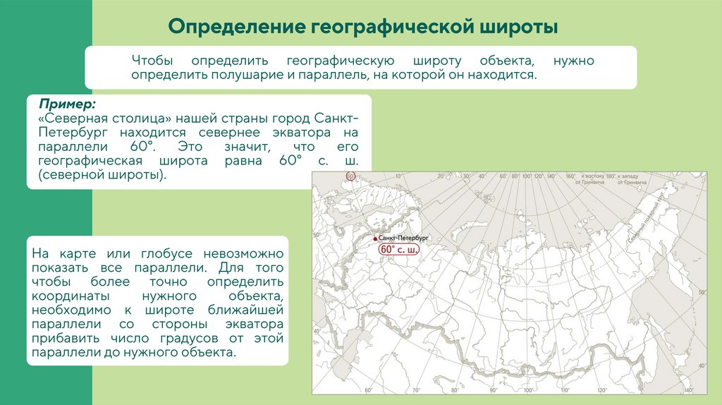 «Северная столица» нашей страны город СанктПетербург находится севернее экватора на