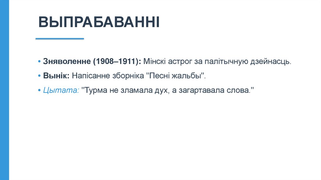 • Цытата: "Турма не зламала дух, а загартавала слова."