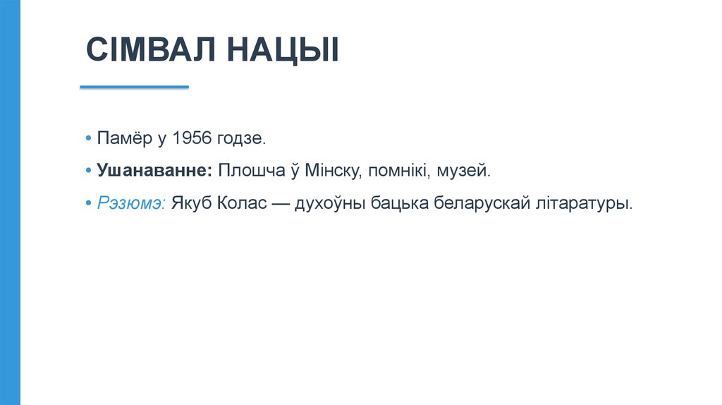 • Рэзюмэ: Якуб Колас — духоўны бацька беларускай літаратуры.
