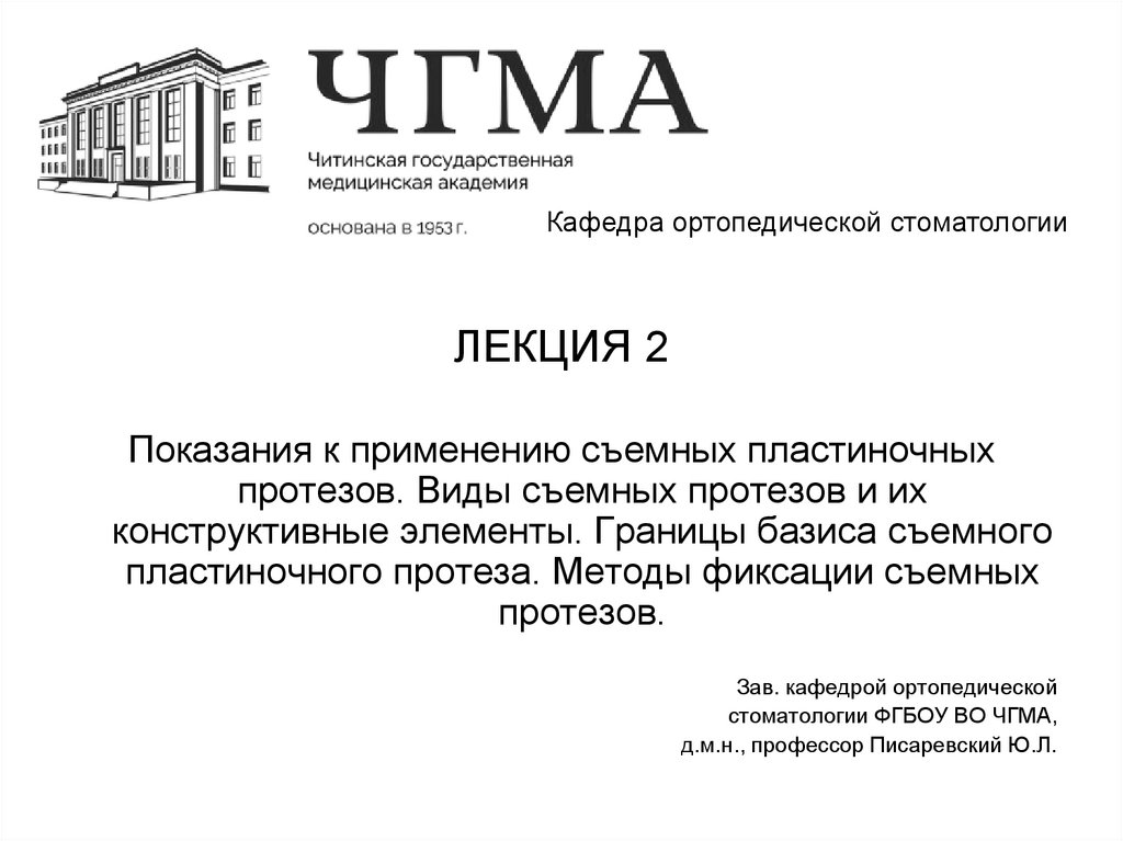Кафедра ортопедической стоматологииЛЕКЦИЯ 2