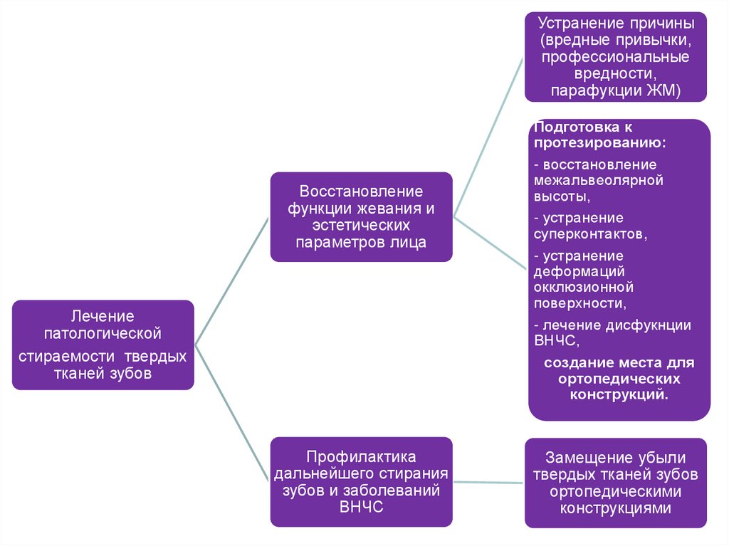 Стирание происходит в пределах эмали зубов и частично дентина.