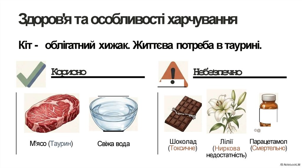Здоров'я таособливості харчуванняКіт - облігатний хижак. Життєва потреба в таурині.