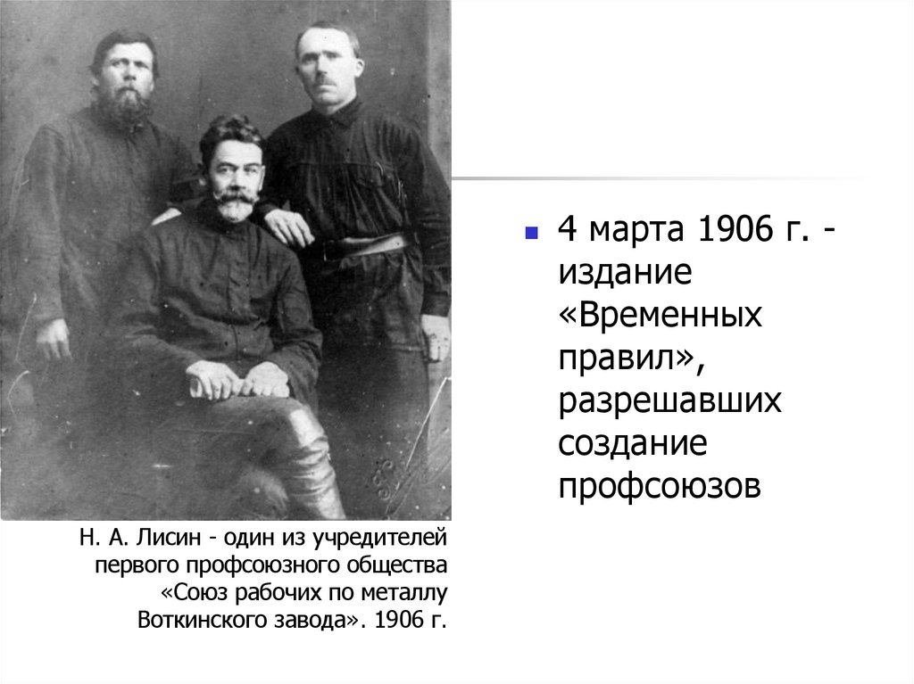 Н. А. Лисин - один из учредителейпервого профсоюзного общества