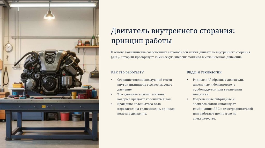 (ДВС), который преобразует химическую энергию топлива в механическое движение.