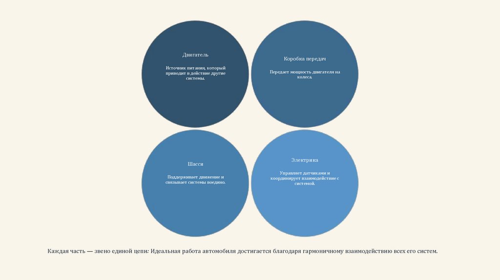 Каждая часть — звено единой цепи: Идеальная работа автомобиля достигается благодаря гармоничному взаимодействию всех его систем.