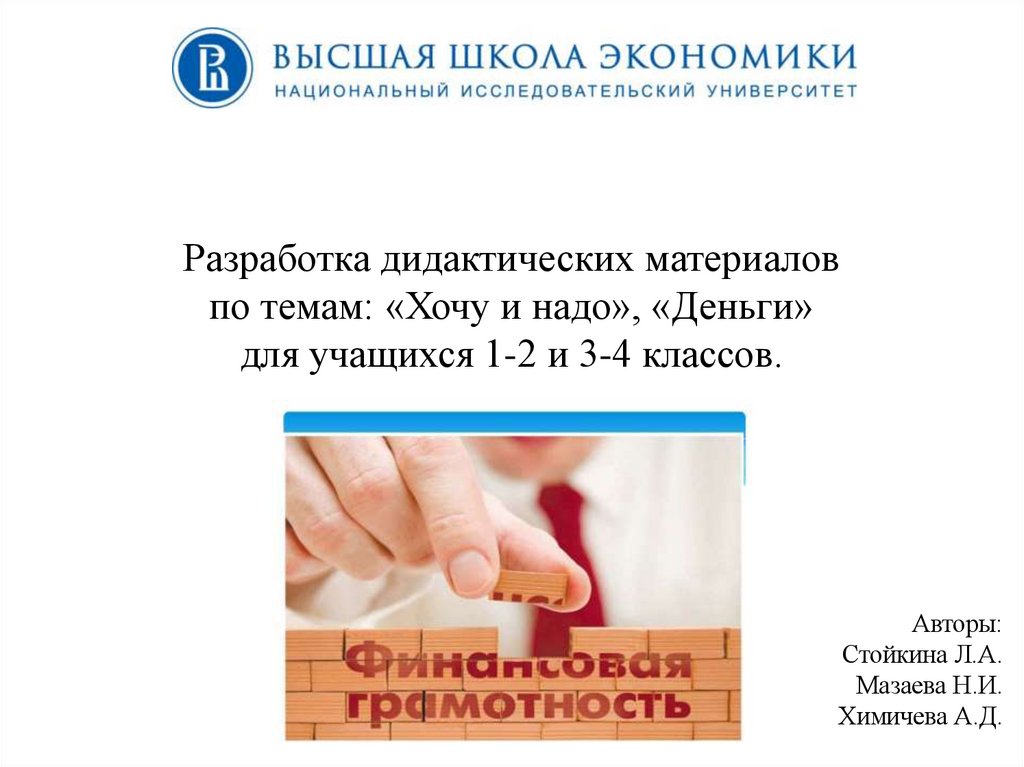 1. Разработка дидактических материалов по темам: «Хочу и надо», «Деньги» для учащихся 1-2 и 3-4 классов.