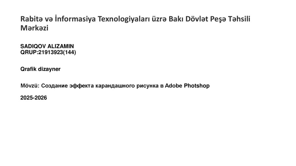 Mövzü: Создание эффекта карандашного рисунка в Adobe Photshop2025-2026