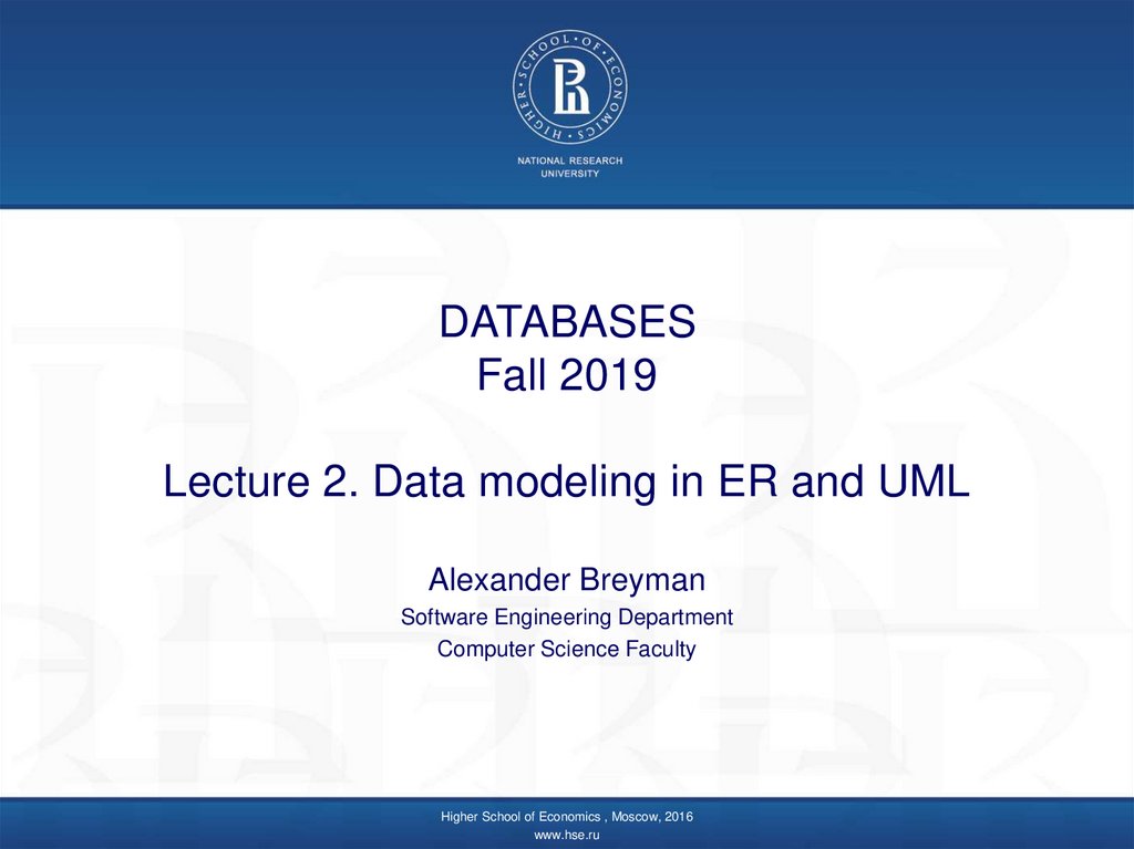 1. DATABASES Fall 2019 Lecture 2. Data modeling in ER and UML