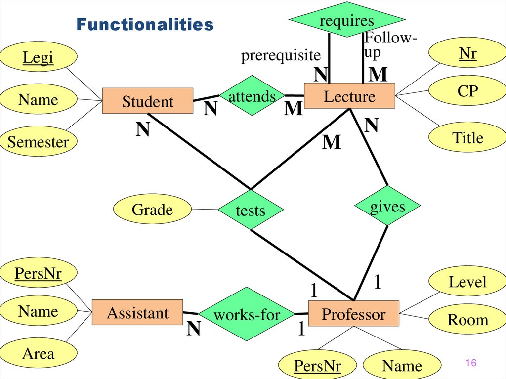 • Professors have a PersID, Name, Level and Room. The PersID identifies