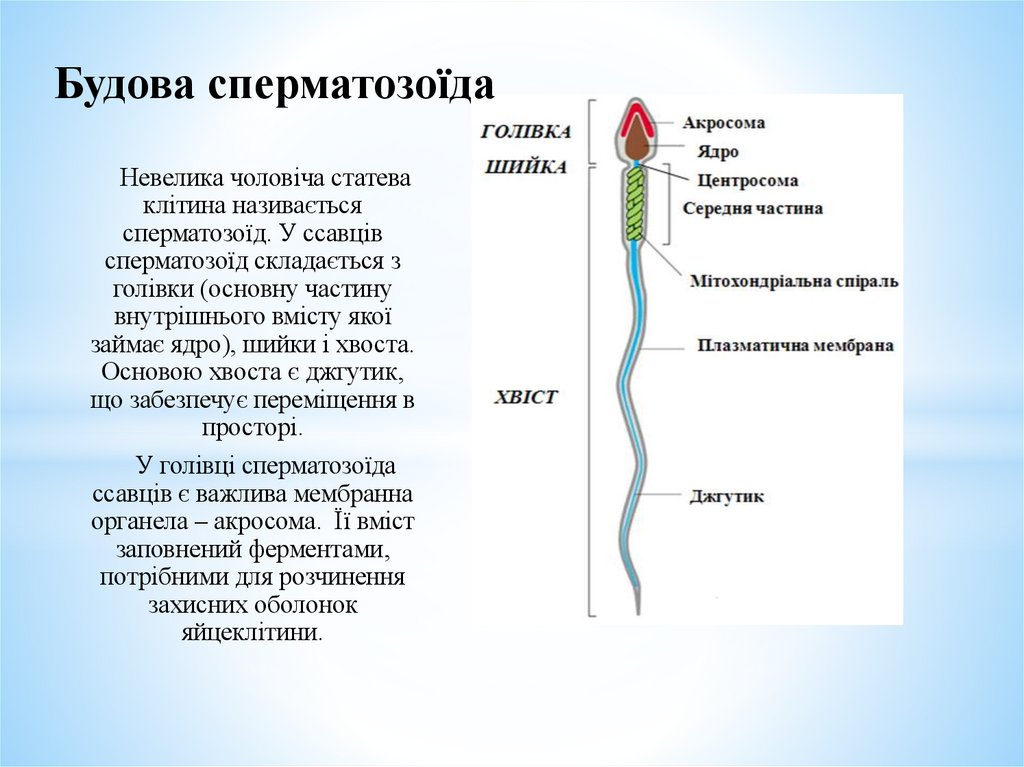 оболонку сперматозоїда; в)містить спадкову інформацію