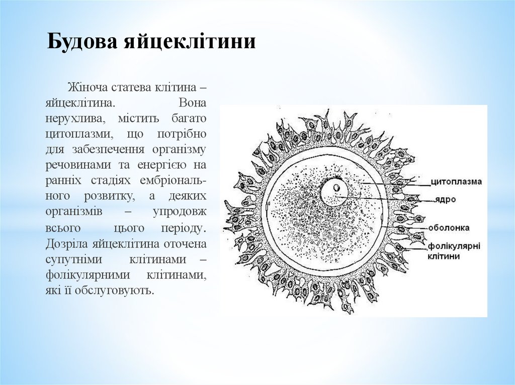 Будова яйцеклітиниЖіноча статева клітина –
