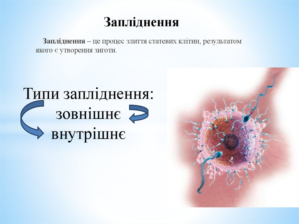 ЗаплідненняЗапліднення – це процес злиття статевих клітин, результатом