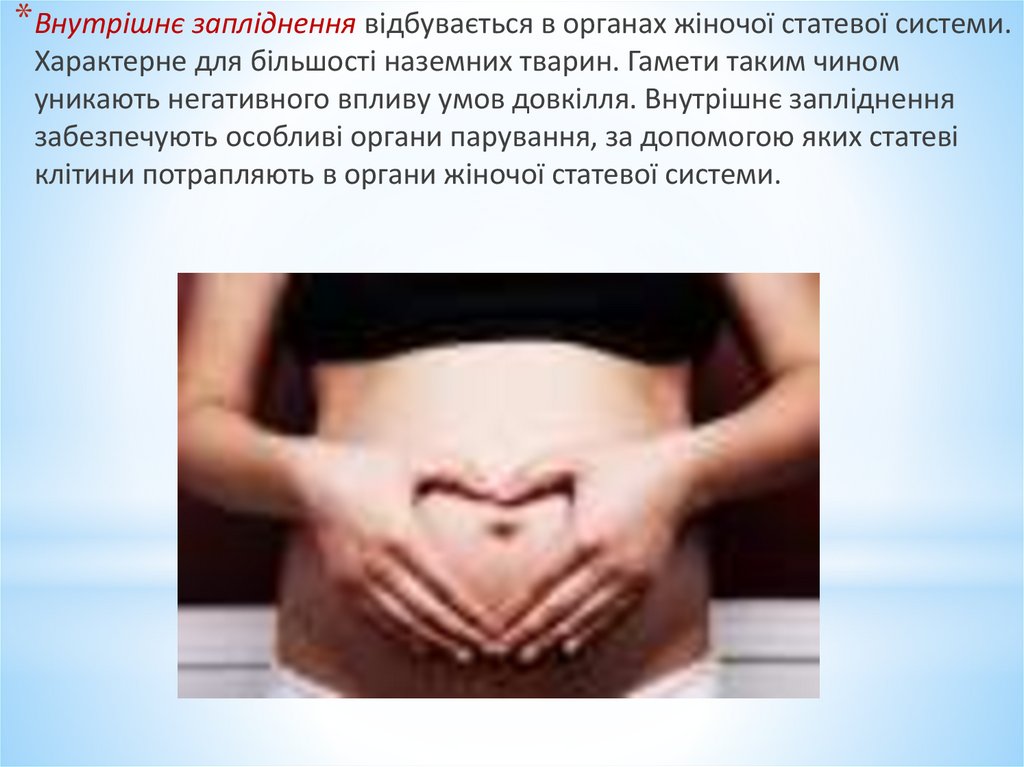 уникають негативного впливу умов довкілля. Внутрішнє запліднення