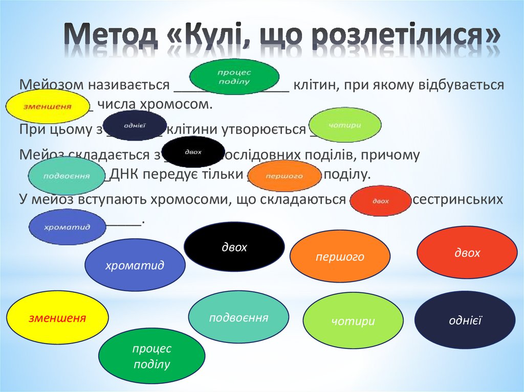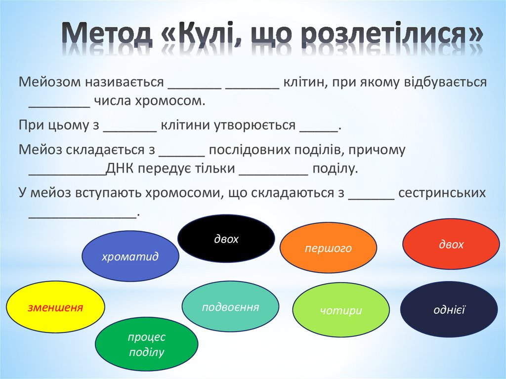 Мейозом називається _______ _______ клітин, при якому відбувається________ числа хромосом.