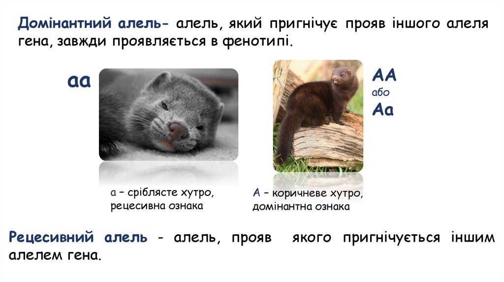 • Алелі (алельні гени) – це різні варіанти одного і того ж гена, що