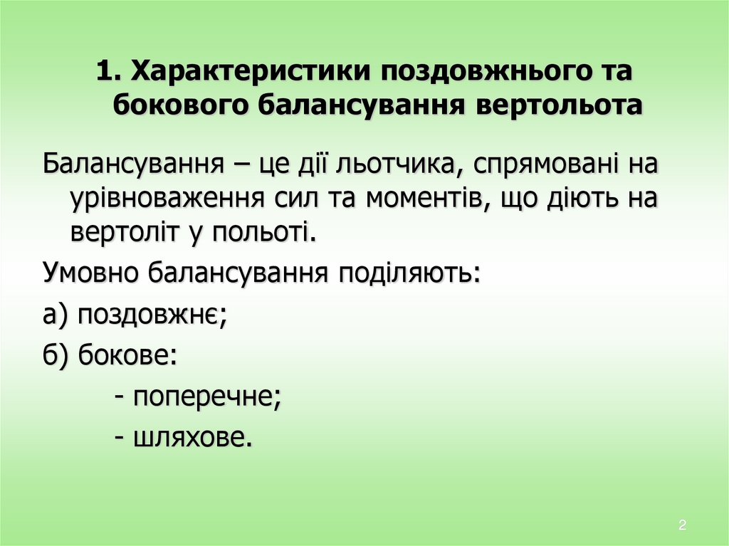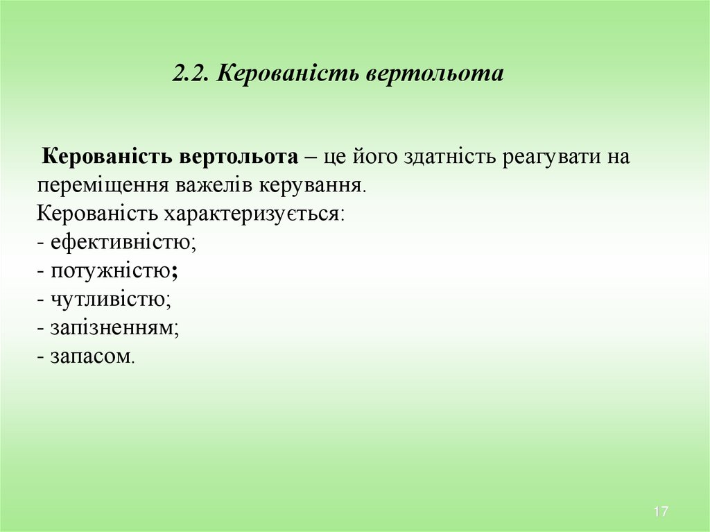 особливості шляхової та поперечної керованості вертольота. Виховувати