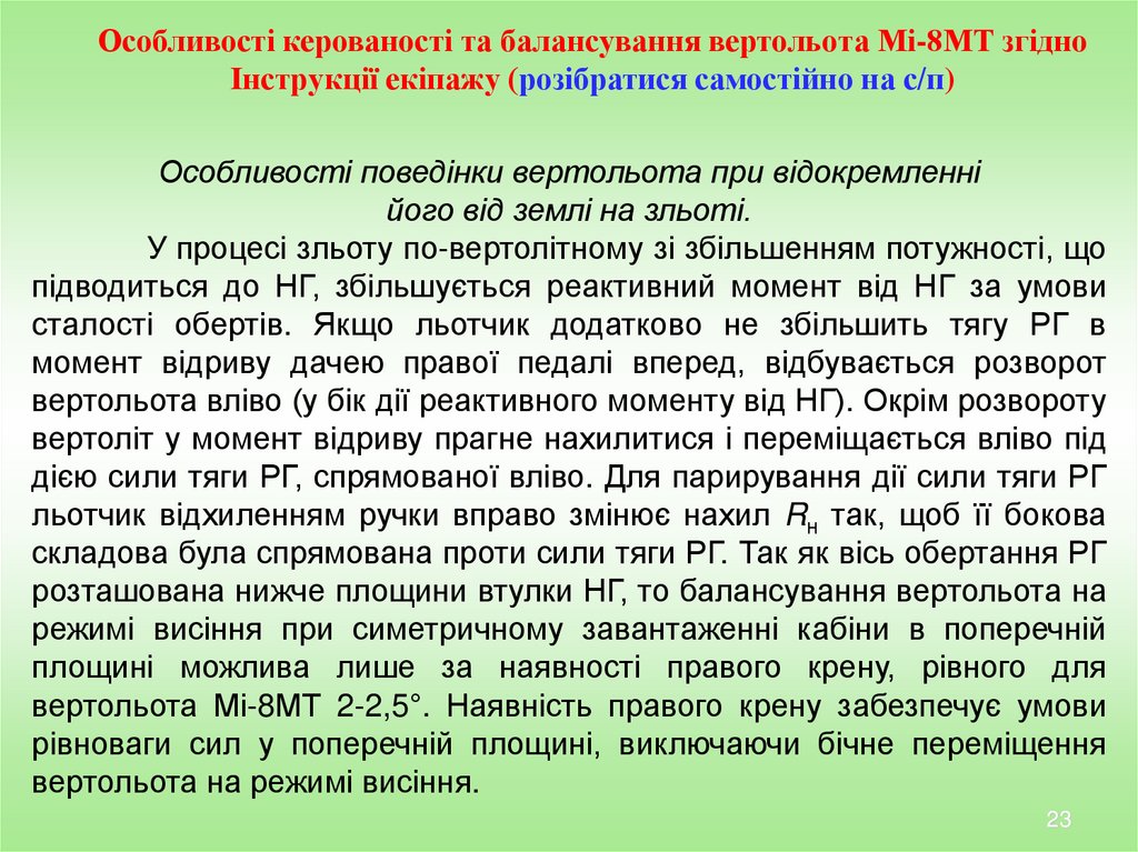Особливості керованості та балансування вертольота Мі-8МТ згідноІнструкції екіпажу (розібратися самостійно на с/п)