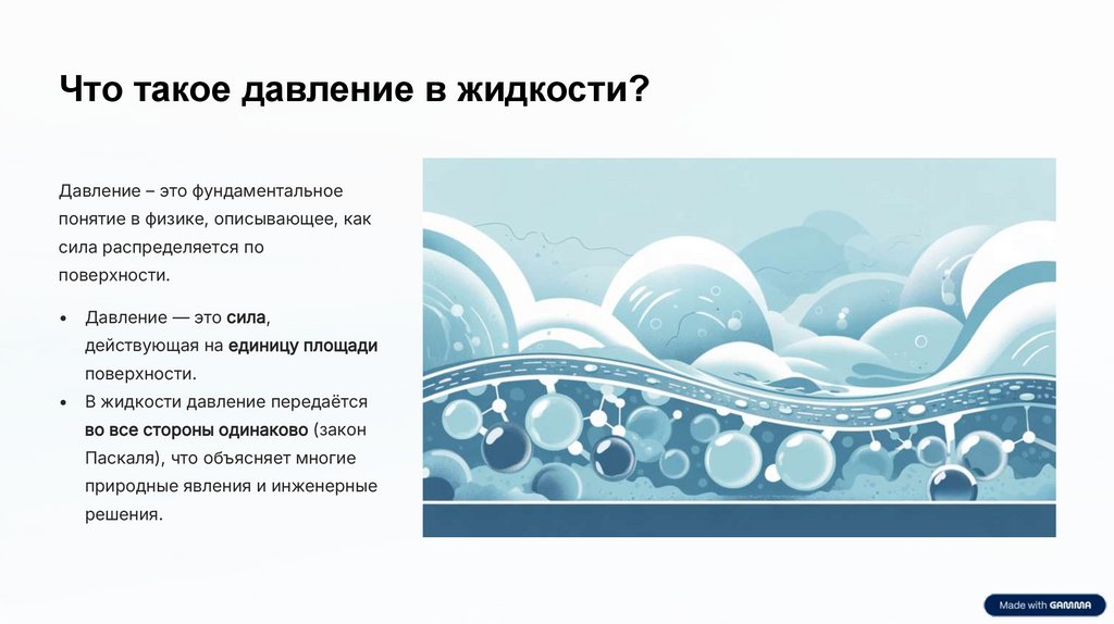 Что такое давление в жидкости?Давление – это фундаментальное