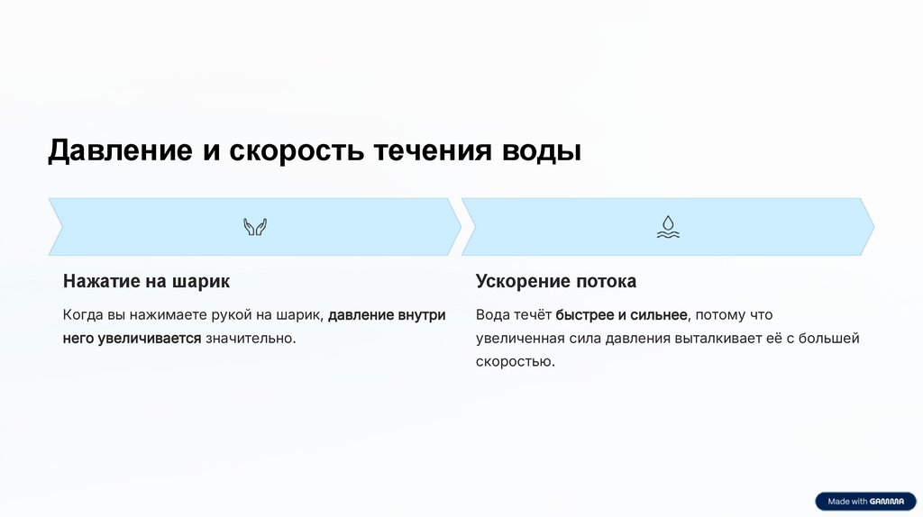 Давление и скорость течения водыНажатие на шарик
