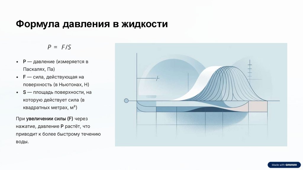 Формула давления в жидкости• P — давление (измеряется в