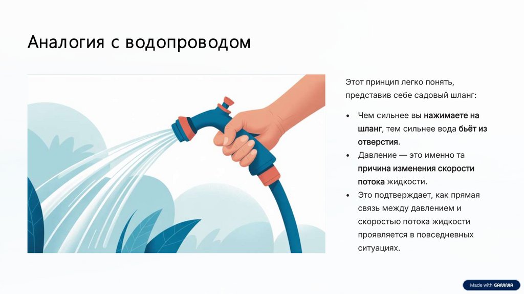 шланг, тем сильнее вода бьёт из