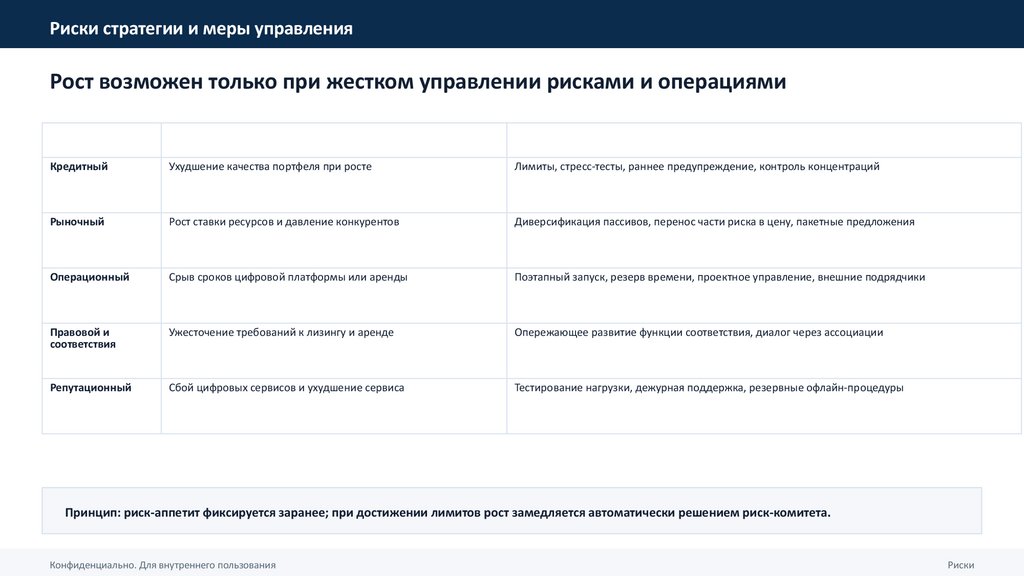 Риски стратегии и меры управленияРост возможен только при жестком управлении рисками и операциями
