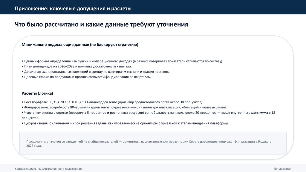 Приложение: ключевые допущения и расчетыЧто было рассчитано и какие данные требуют уточнения