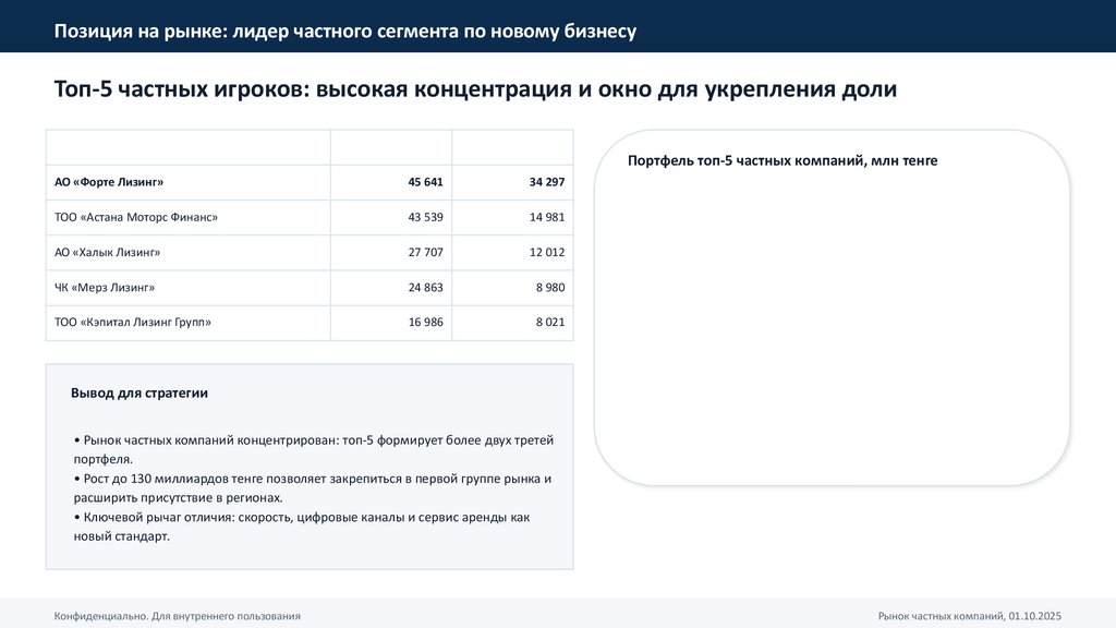 Позиция на рынке: лидер частного сегмента по новому бизнесуТоп‑5 частных игроков: высокая концентрация и окно для укрепления доли