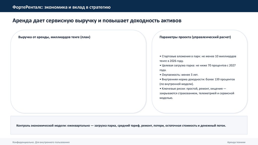 • Детальная смета капитальных вложений в аренду по категориям техники и график поставок.