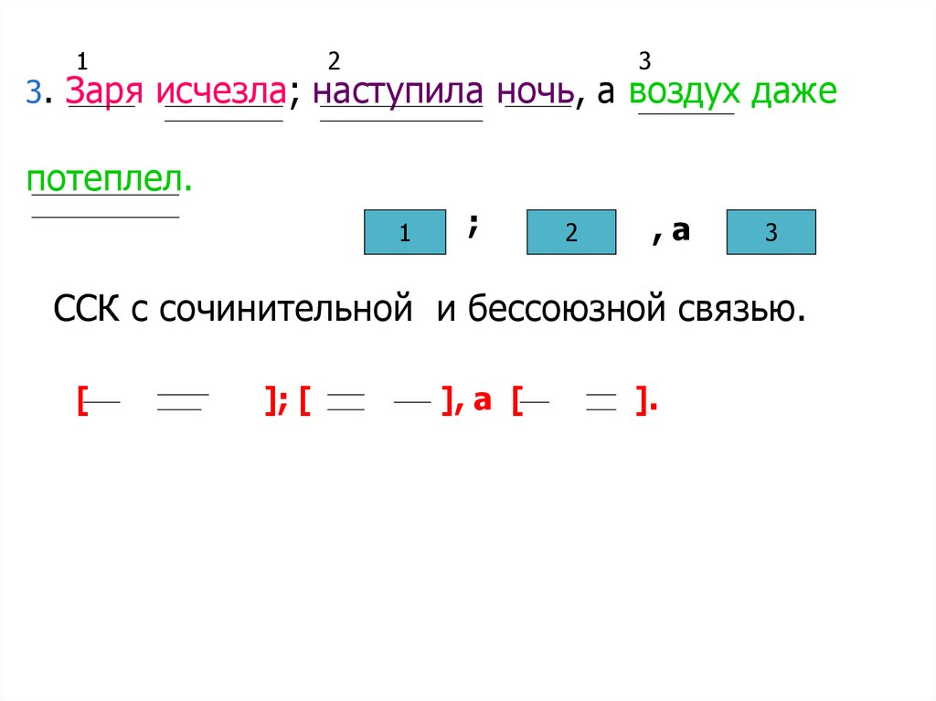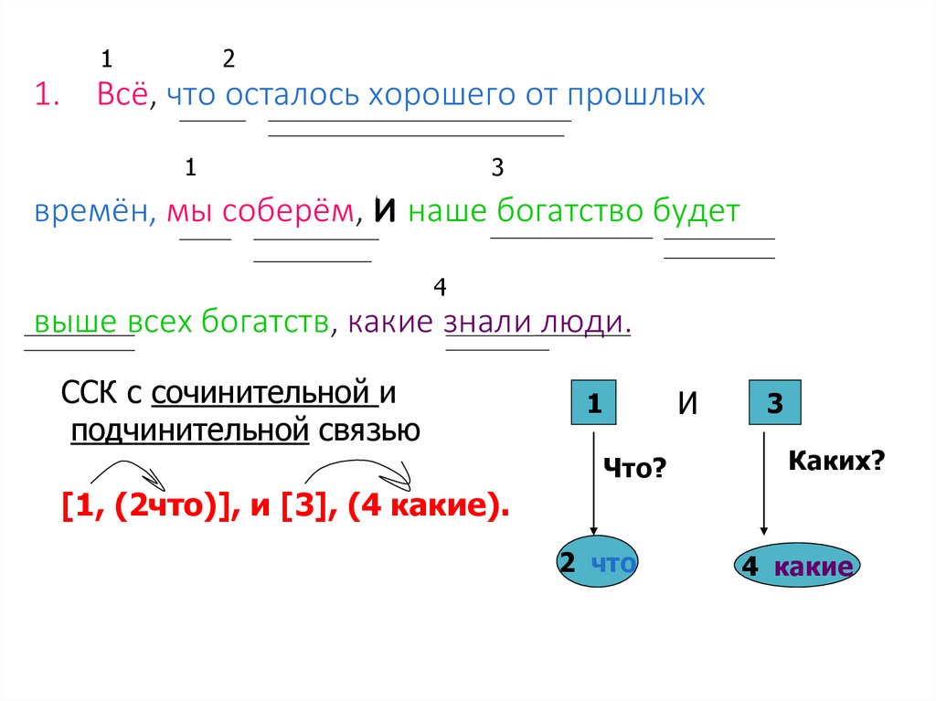 ССК с сочинительной, подчинительной и бессоюзной связью.