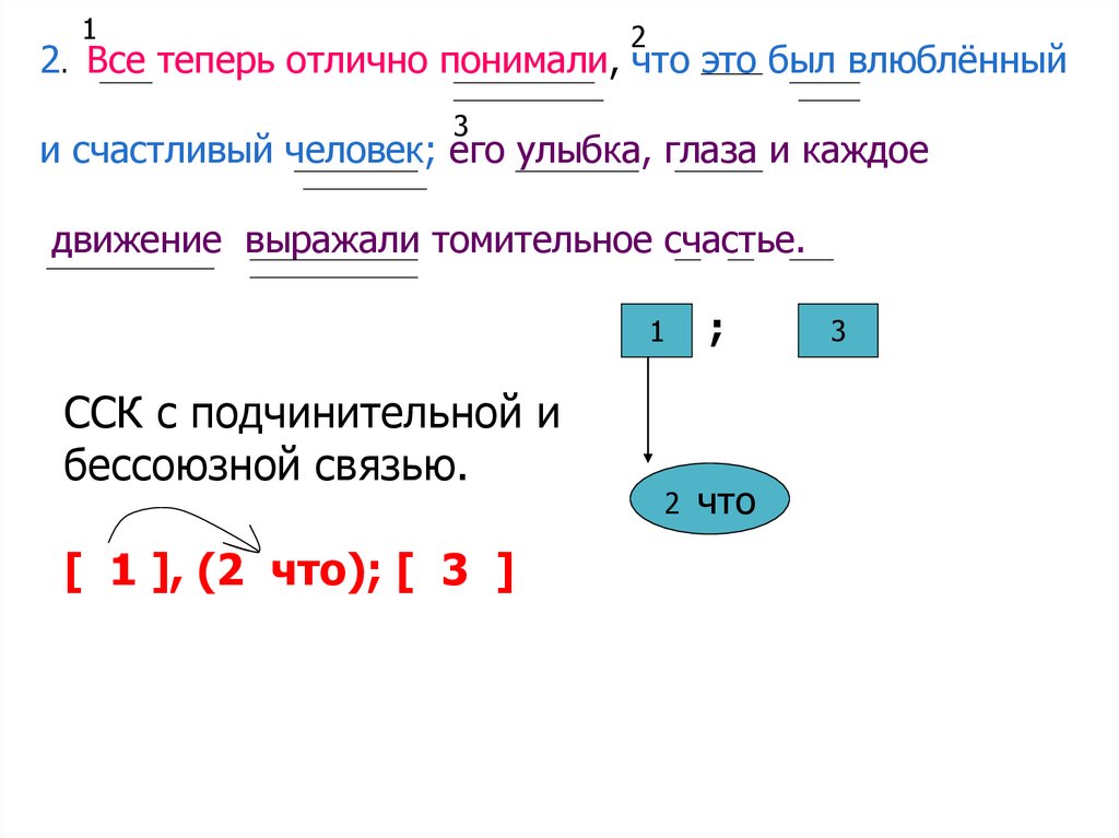 грамматические основы. 2 и 3 выделяют придаточную часть.