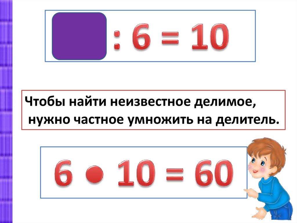 Чтобы найти неизвестное делимое,нужно частное умножить на делитель.