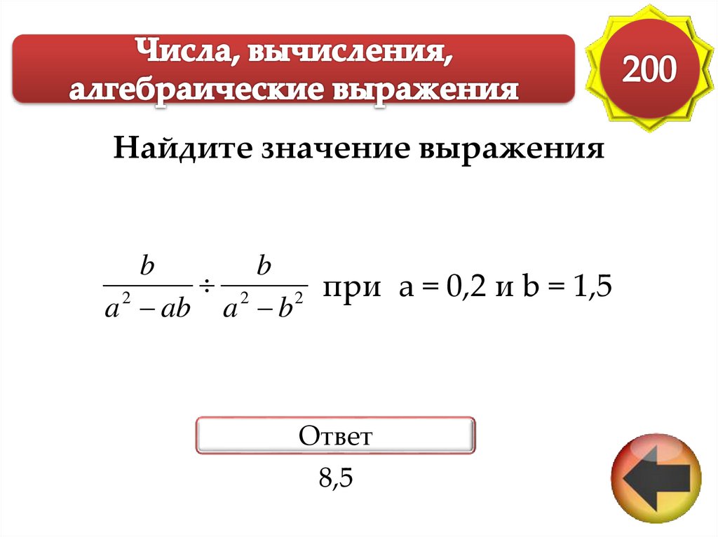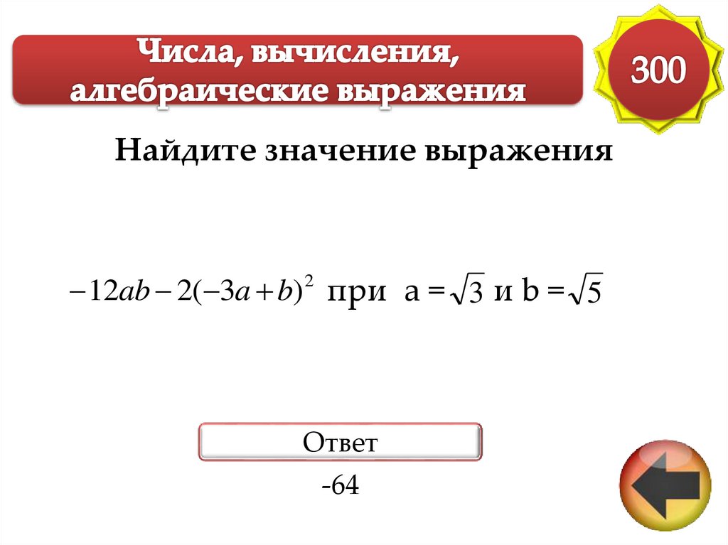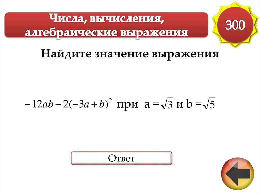 Найдите значение выражения12ab 2( 3a b) при a = 3 и b = 5