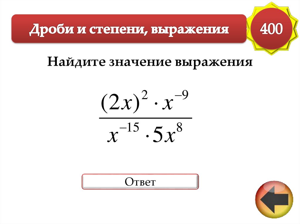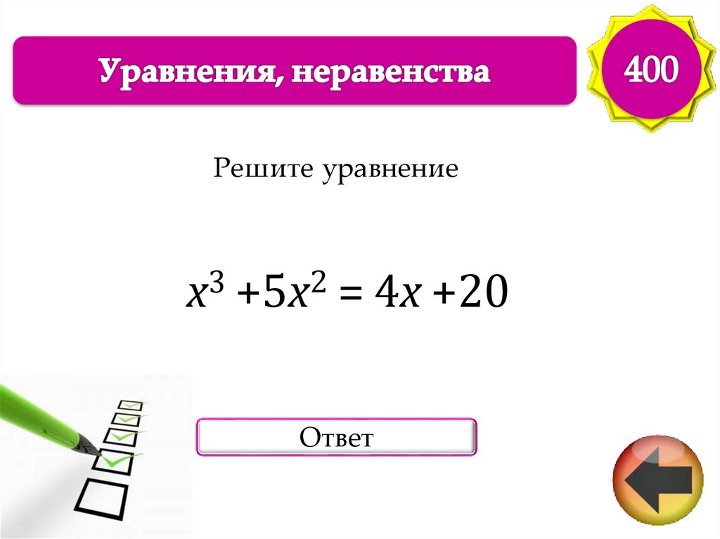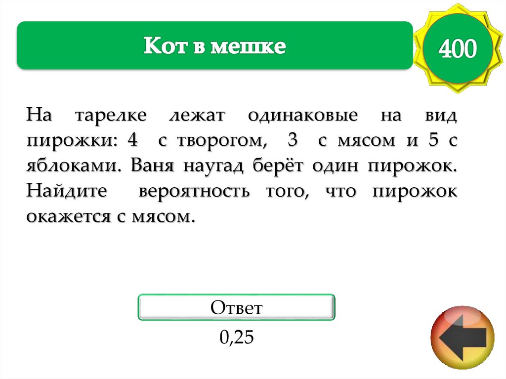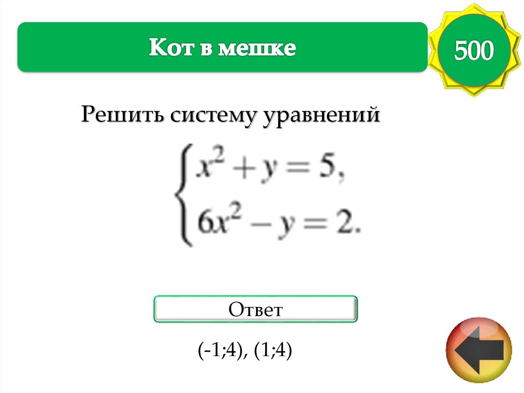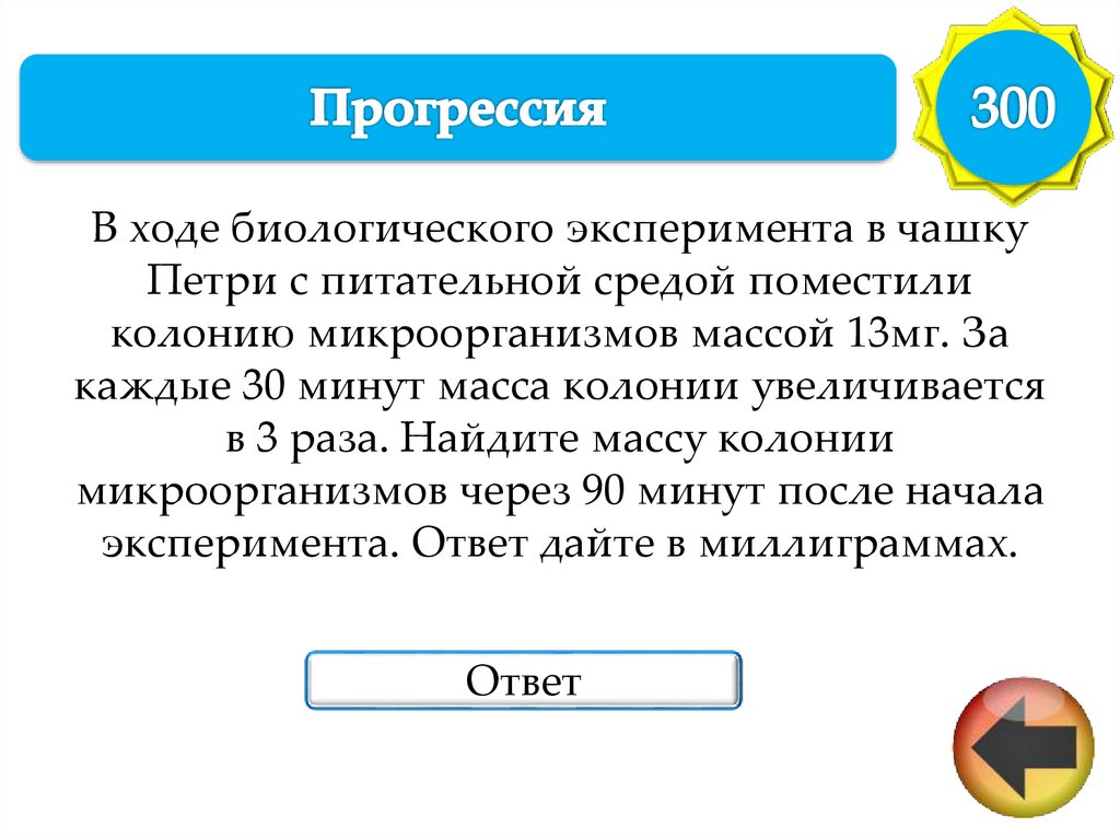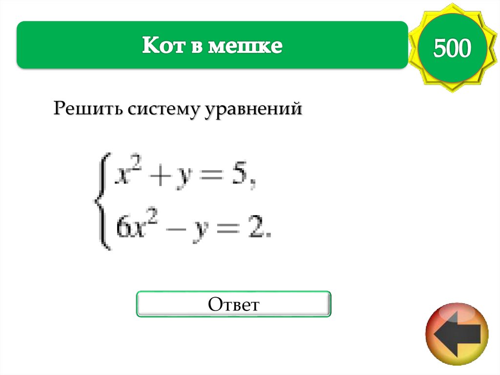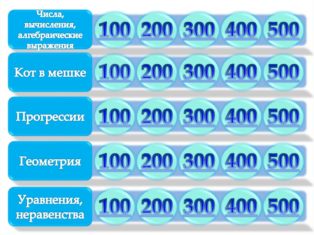 вопросов разной степени сложности от 100 до 500 баллов. 100 баллов