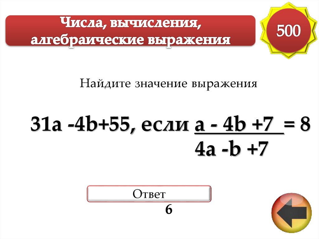 Найдите значение выражения31a -4b+55, если a - 4b +7