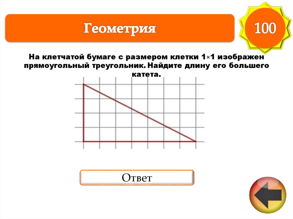 На клетчатой бумаге с размером клетки 1×1 изображенпрямоугольный треугольник. Найдите длину его большего
