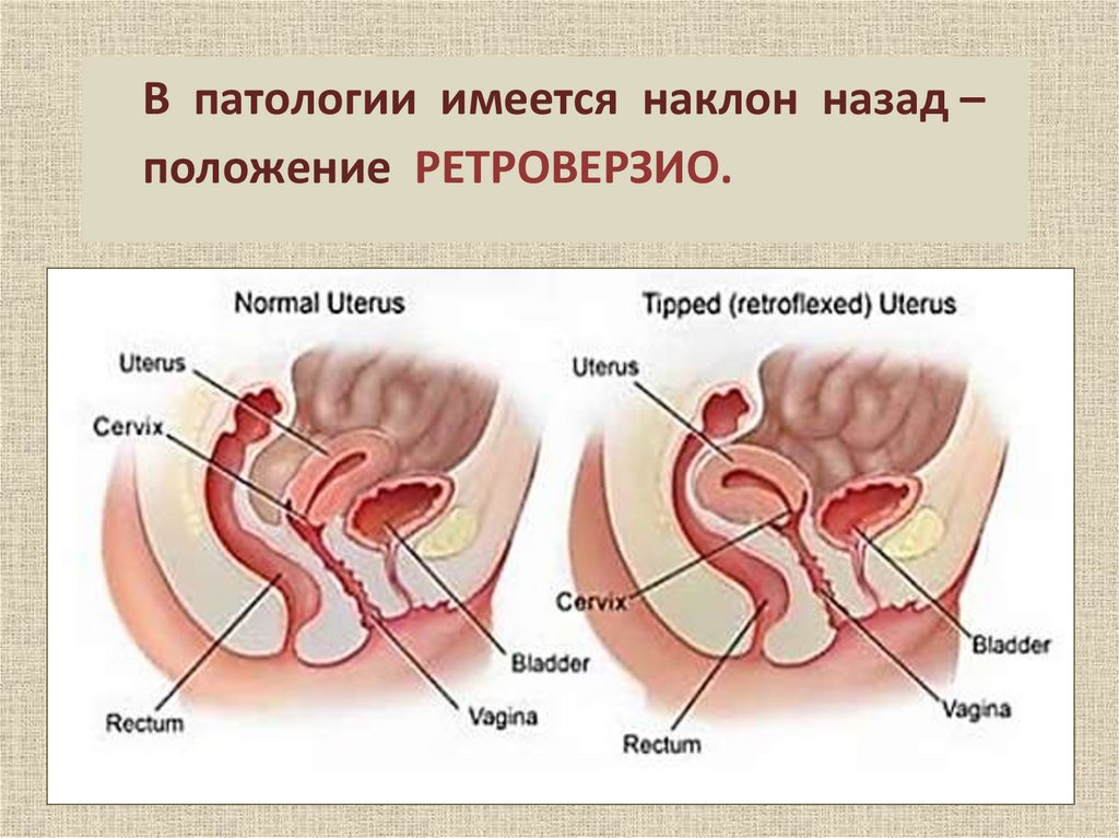 В патологии имеется наклон назад –положение РЕТРОВЕРЗИО.