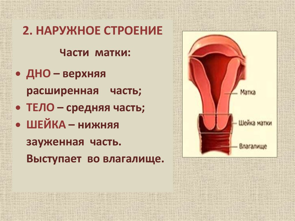 2. НАРУЖНОЕ СТРОЕНИЕЧасти матки: