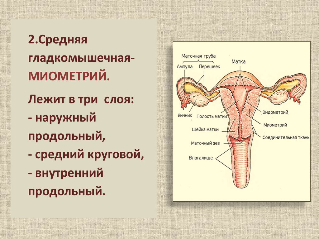 - средняя ГЛАДКОМЫШЕЧНАЯ. Лежит в два