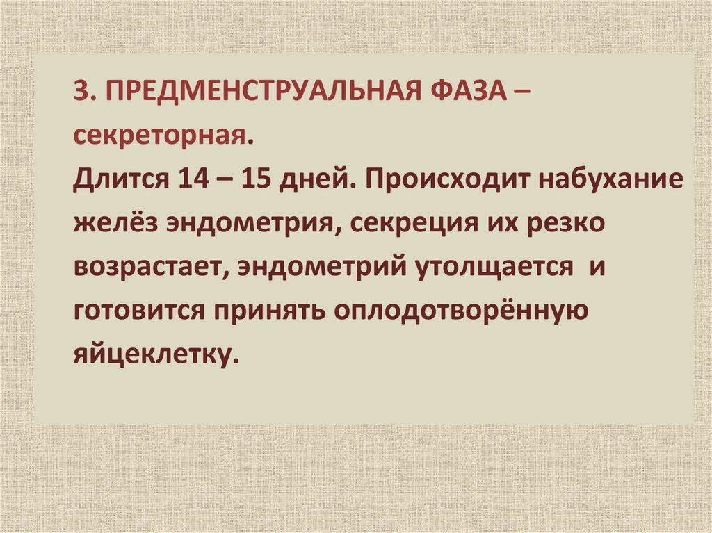 3. ПРЕДМЕНСТРУАЛЬНАЯ ФАЗА –секреторная.