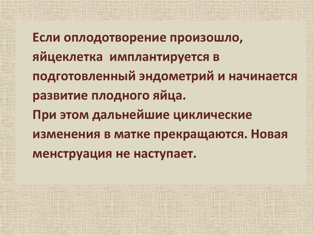 Если оплодотворение произошло,яйцеклетка имплантируется в