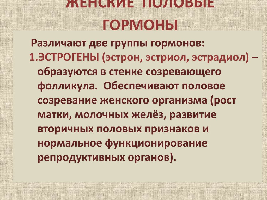 ЖЕНСКИЕ ПОЛОВЫЕГОРМОНЫ