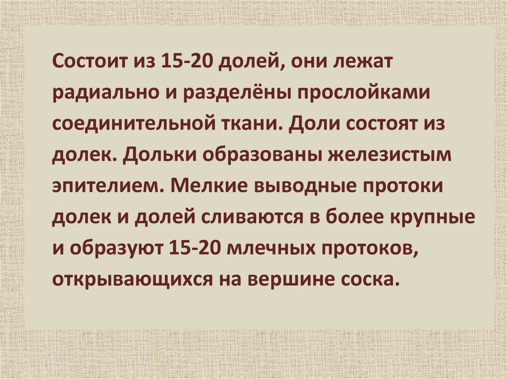 Состоит из 15-20 долей, они лежатрадиально и разделёны прослойками