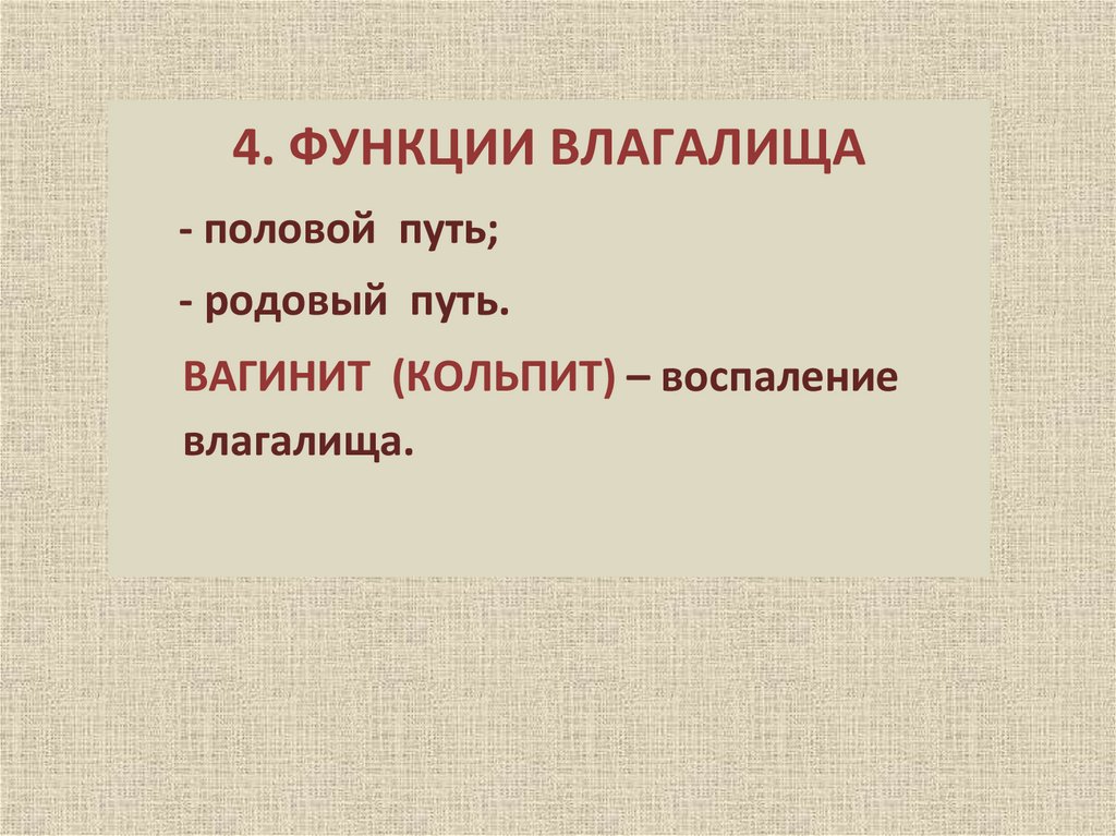 4. ФУНКЦИИ ВЛАГАЛИЩА- половой путь;