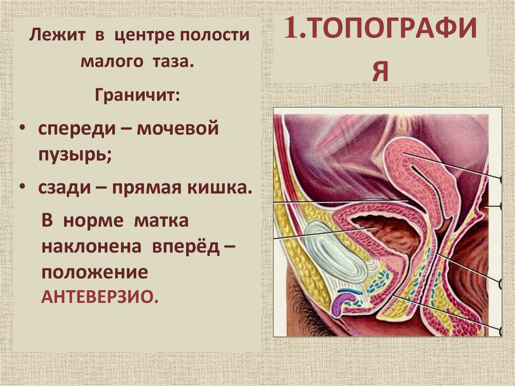 Лежит в центре полостималого таза.